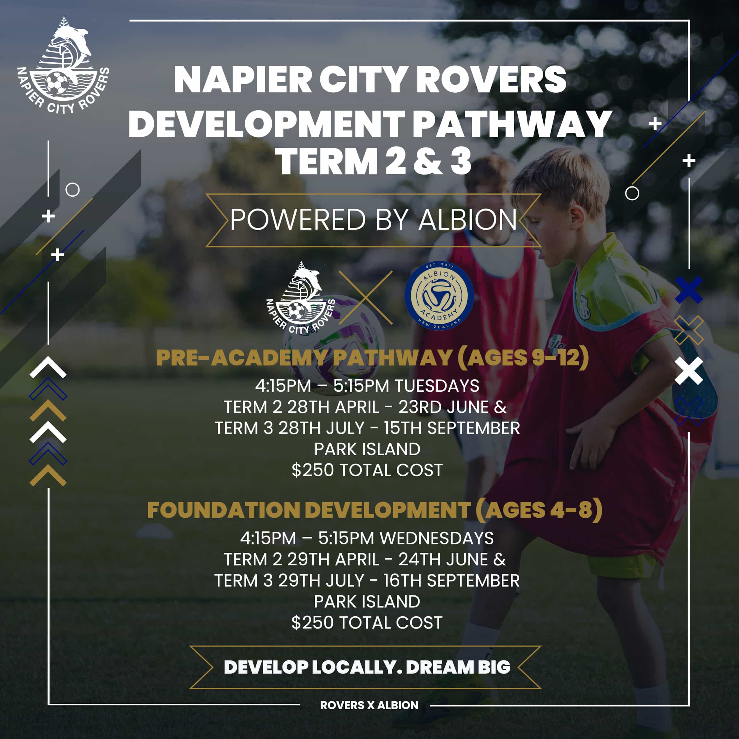 The Napier City Rovers Development Pathway, powered by Albion Coaching, is the clear and supported entry point for young players who aspire to represent NCR in Pre-Academy, CDL Youth teams, senior first teams and beyond.